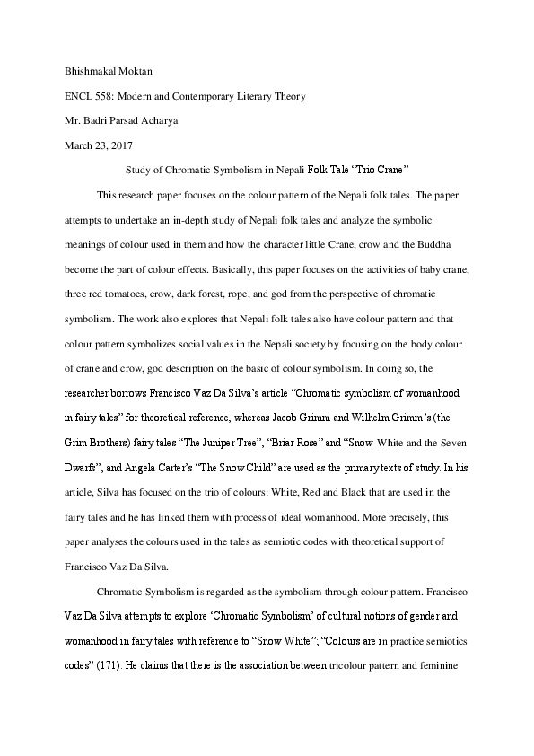 Doc Chromatic Symbolism In Nepali Folk Tale Trio Crane Bhishmakal Moktan Academia Edu