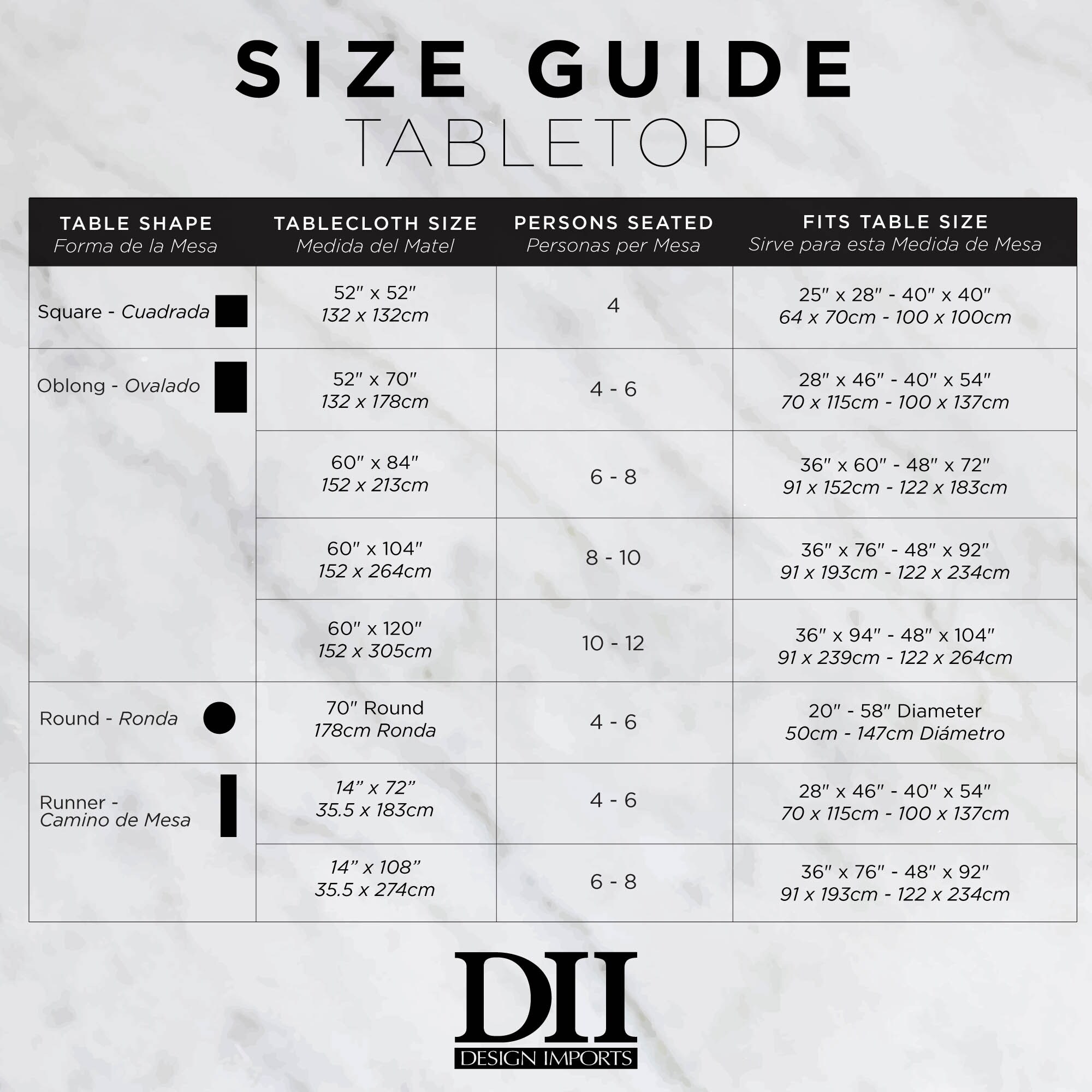 For instance, if your round table has a 50inch diameter and you want a 10inch drop, your calculation would be (10 x 2) 50, which equals 70 Your desired tablecloth size would be a 70inch round If you don’t find the exact size that you want, don’t panic!. Tablecloths Fitted Basic Poly 70Plus Colors Company Info Toll Free 1(866) About Us. Tablecloths Despite its selfexplanatory name, a good linen table cloth is more than just a “mere piece of cloth” to cover the top of a table, it is the basis for any décor But how do you wrap your head around such an immense variety of options that we have to offer, and make the right choice for your unique event?.