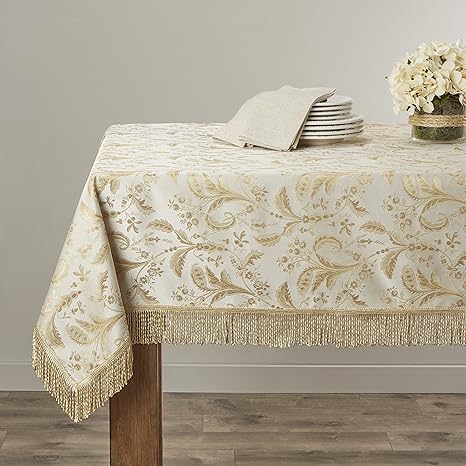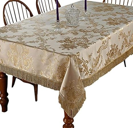 Amazon Com Violet Linen Majestic Damask Design Oblong Rectangle Tablecloth 54 X 72 Beige Home Kitchen