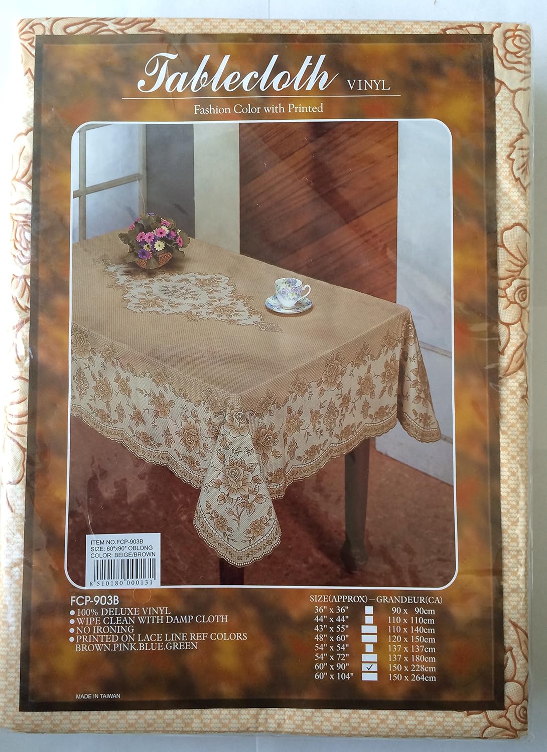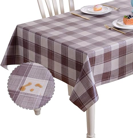 Amazon Com Deluxe Vinyl Tablecloth 60 X 90 Oblong Beige Brown Home Kitchen