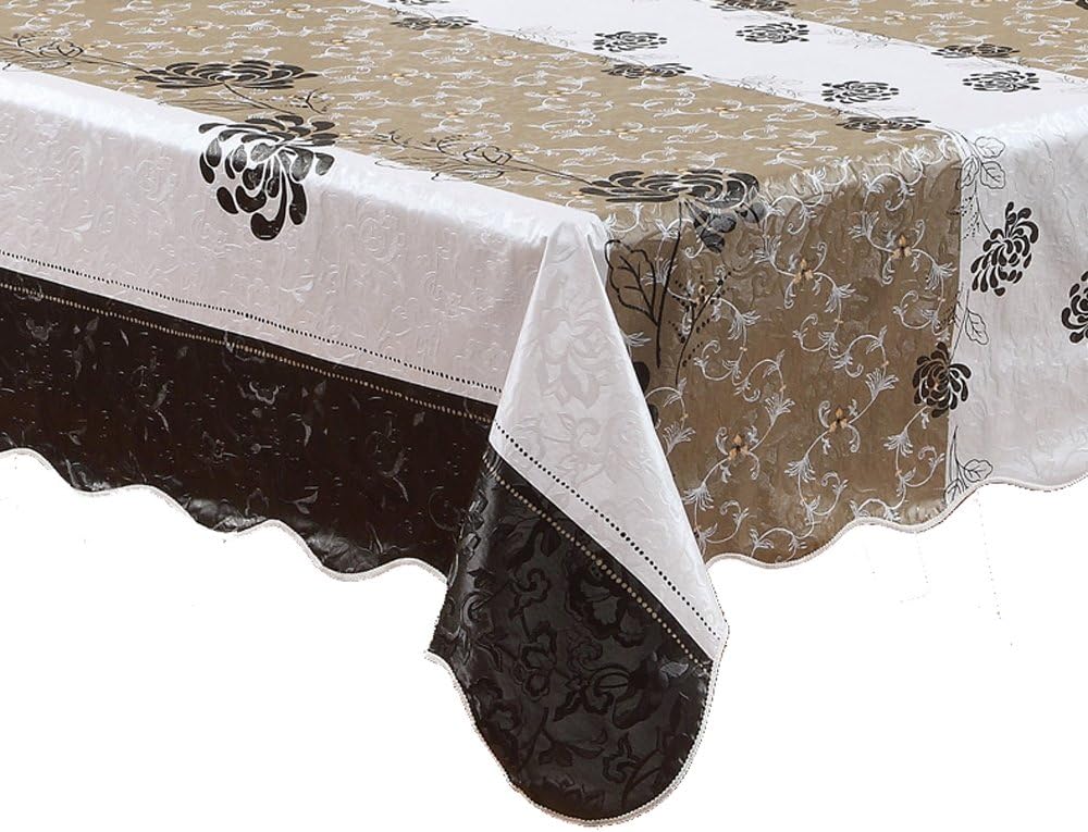 Amazon Com Artisan Flair Af5472 054 Black Chrysanthemum Oblong Pvc Tablecloth Waterproof With Scalloped Edge 54 X 72 Kitchen Dining