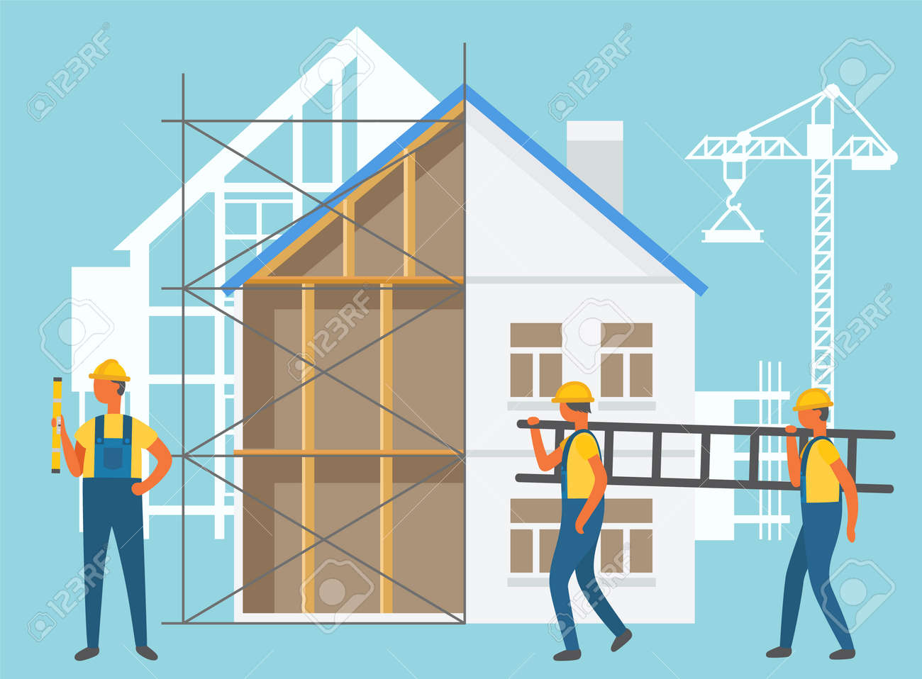 Builders Holding Stairs Building House Silhouette Of Crane Royalty Free Cliparts Vectors And Stock Illustration Image