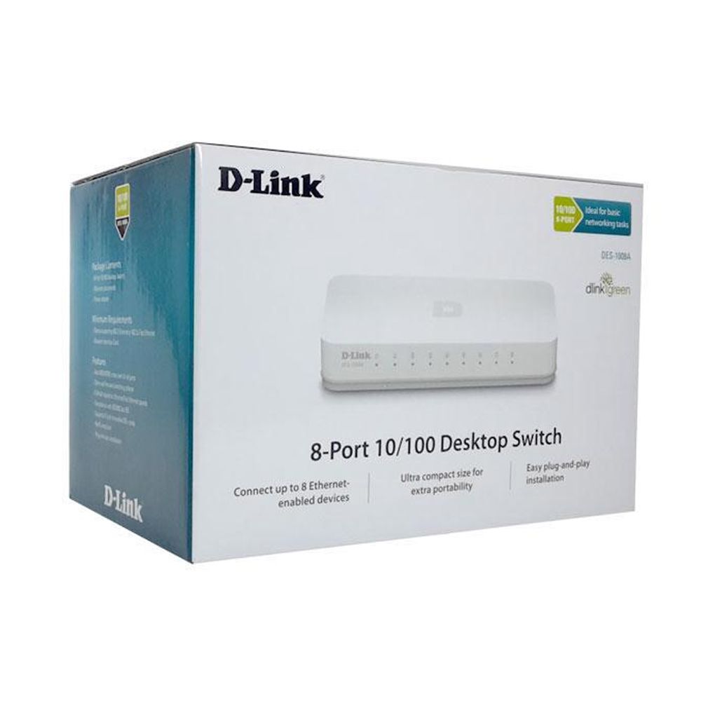 5port 10/100/1000 Desktop Switch (DGS1005G) provides an excellent solution for expanding your Gigabit network Gigabit speed is 10 times faster than a 100Mbps Fast Ethernet connection, enabling you to save time transferring bandwidthintensive music, video, photos, graphic, and data files By sharing the Internet, users can check email, browse the web, chat with friends and. DLink DES1008D 10/100 Fast Ethernet Switch The switch is used but fully functional Thanks and happy auction!. Discuss DLink 8Port 10/100 Ethernet Switch Sign in to comment Be respectful, keep it civil and stay on topic We delete comments that violate our policy, which we encourage you to read.
