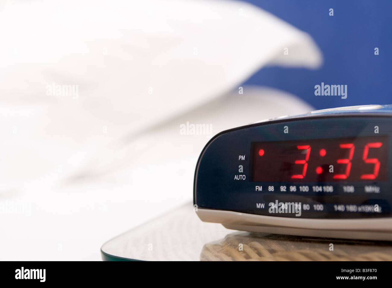 Empty Bedroom With Focus On Alarm Clock Stock Photo Alamy