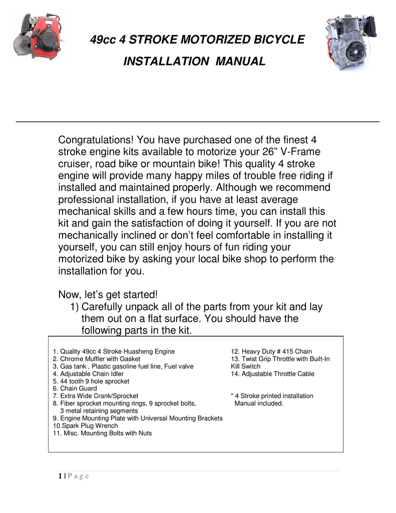 49cc 4 Stroke Motorized Bicycle Installation Manual Manualzz