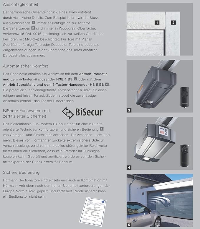 IIII Hörmann – RenoMatic – Garagentor – LSicke – MSicke Ab 100 € Versandkostenfrei Deutschlandweit innerhalb von 12 Werktagen 3fach Qualitätssicherung in der Logistik Individuelle Beratung. ArtNr HÖRMANN Sektionaltor LPU 42 42mm MSicke Decograin CH703 Titan Metallic, inkl Zargenpaket und ZBeschlag. IIII Hörmann Garagentor Sektionaltor LPU42 Woodgrain Anthrazit RAL 7016 LSicke ZBeschlag inkl Zargenpaket Antrieb ProMatic Serie 3 Führungsschiene FS 10 1x Handsender HSE 4 BS Breite und Höhe nach Wahl Ab 100 € Versandkostenfrei Deutschlandweit innerhalb von 12 Werktagen 3fach Qualitätssicherung in der Logistik Individuelle Beratung.