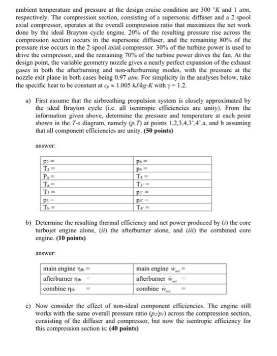 1 The T S Diagram Below Shows The Turbojet Core Chegg Com