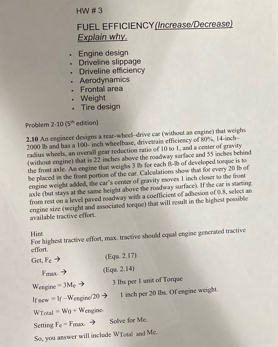 Solved Hw 3 Fuel Efficiency Increase Decrease Explain W Chegg Com