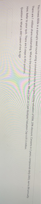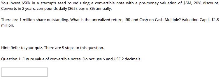 You Invest 50k In A Startup S Seed Round Using A Chegg Com