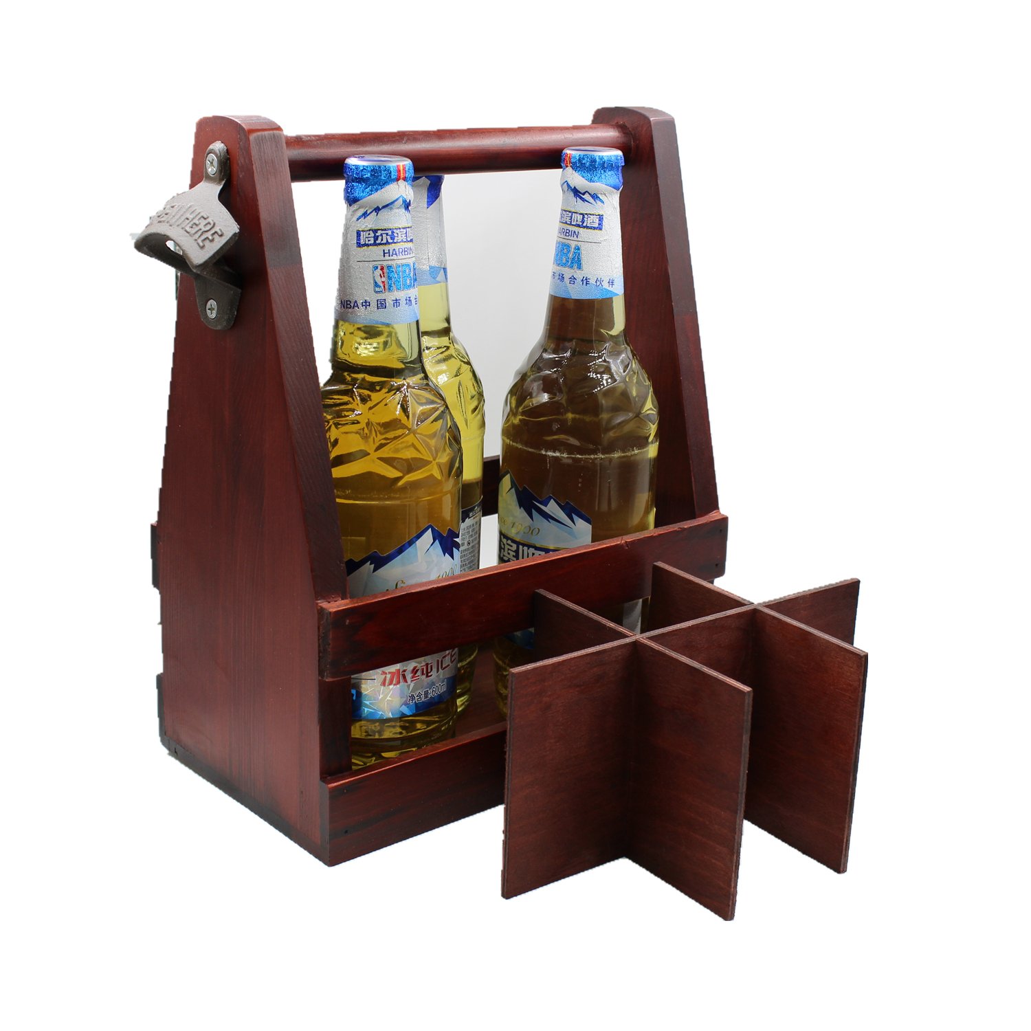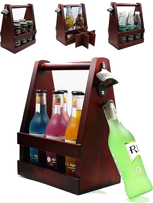 Wooden Beer Carrier Holder Tote Caddy Basket With Bottle Opener Handcrafted Wood Six Pack Amazon Ca Home Kitchen