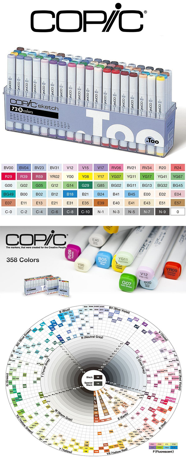 Copic Markers come in 358 colors All 358 markers need 358 refills Your beginner will spend years building a collection But you don’t know which markers they need or want Play it safe Get a gift certificate VioletaInkcom is my favorite online resource for Copic Markers and refills They have great customer service and prompt shipping. Nov 14, 14 The Copic Sketch 358 Suitcase Set from Copic We stock the Copic Sketch 358 Suitcase Set and many other great Copic products, Buy online now from our secure site. All 358 colors of Copic Sketch will become completed in combination of the 72pc Color Set A, B, C, D and E (NOTE The color E00 & 100 will be duplicated) Copic Sketch 12 Color Set This set includes basic and primary colors For coloring the portrait or characters of manga, we recommend you to purchase some colors with skin tone additionally.