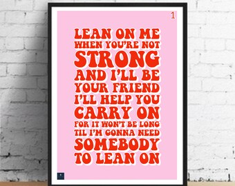 Lean On Me Bill Withers Song Lyrics Typography Print Poster Artwork Home Art Lean On Me Lyrics Lean On Me Poster Artwork