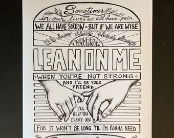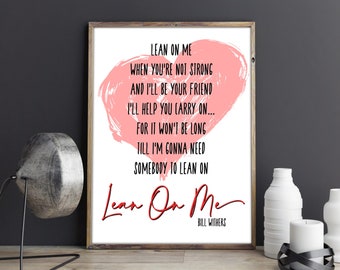 Bill Withers Lean On Me Song Print Friend Gift Lyrics Decor Etsy