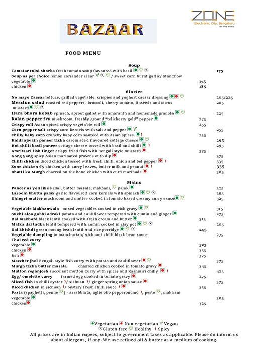 Bazaar Zone By The Park Electronic City Menu Menu For Bazaar Zone By The Park Electronic City Zone By The Park Bengaluru Bengaluru