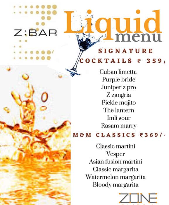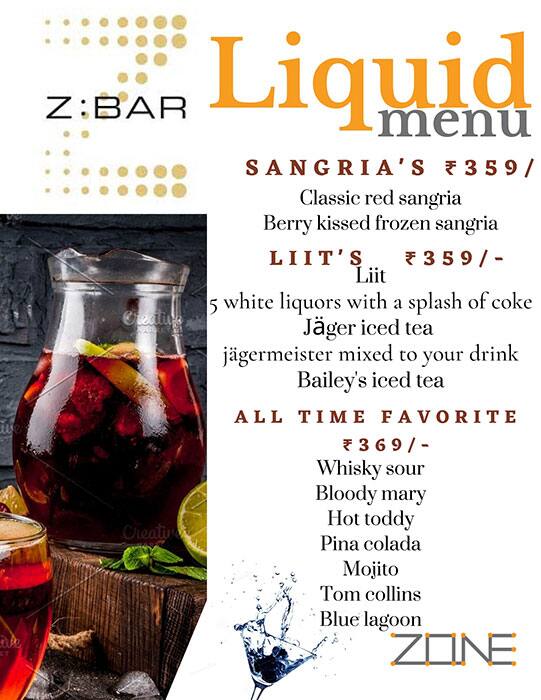 Z Bar Menu Menu For Z Bar Zone By The Park Bengaluru Bengaluru