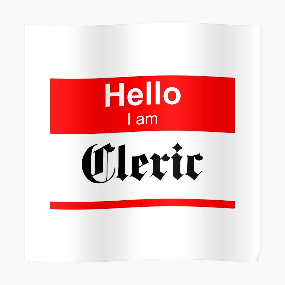 Hello I Am Cleric Name Sticker By Saltmarshall Redbubble