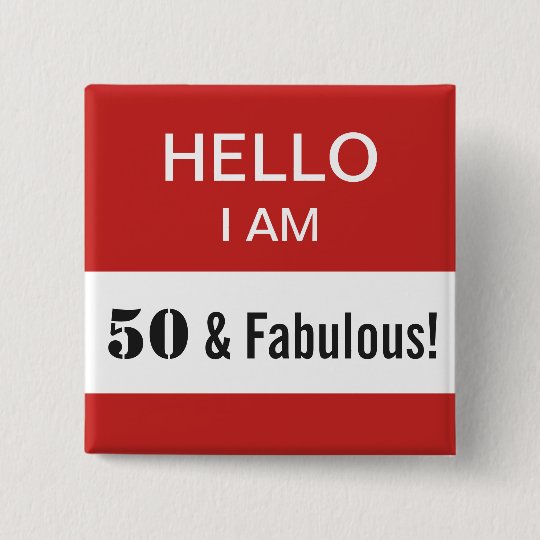 50th Birthday Hello I Am 50 And Fabulous Name 15 Cm Square Badge Zazzle Com Au