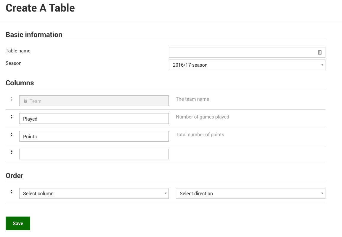 Queensland Premier League 2;. ALeague 19/ Regular Season;. Advanced League Table Creator League Table with Seperate Home and Away Results The advanced league table creator allows you to set the number of teams in the league, the points for a win / loss, how many times the team play each other, seperate the league reults on goal difference or goal average, add team names, add game results, produces a full league table with supporting league statastics and leage results matrix and allows you to save your league and edit it later You can also.