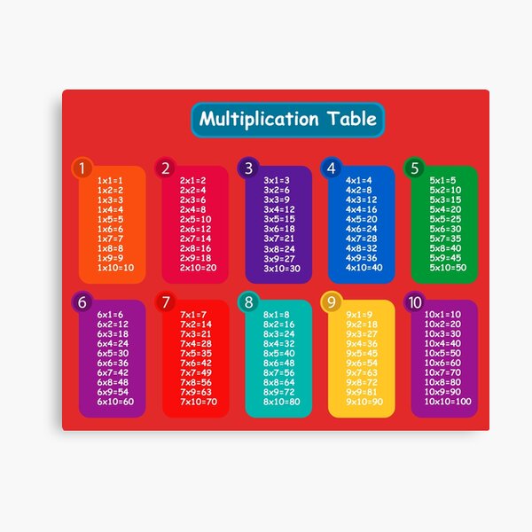 Times Table Canvas Prints Redbubble