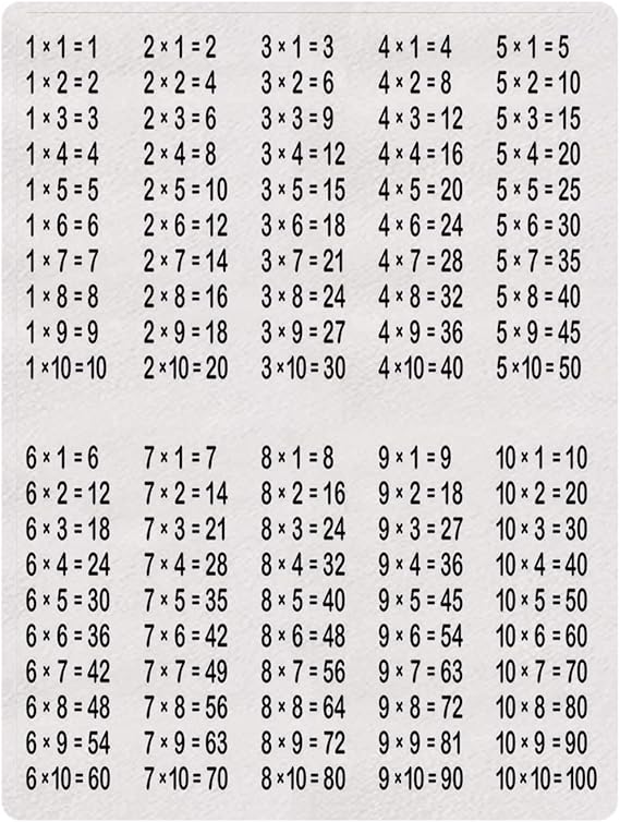 Yoliyana Educational Various Print Blanket Multiplication Table On White Background Mathematics Algebra School Student Decorative For Sofa 70 L X 49 W Amazon Ca Home Kitchen