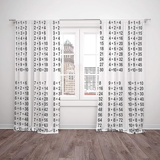 Thermal Insulated Blackout Window Curtain Educational Multiplication Table On White Background Mathematics Algebra School Student Decorative Black White Living Room Bedroom Kitchen Cafe Window Drapes Amazon In Home Kitchen