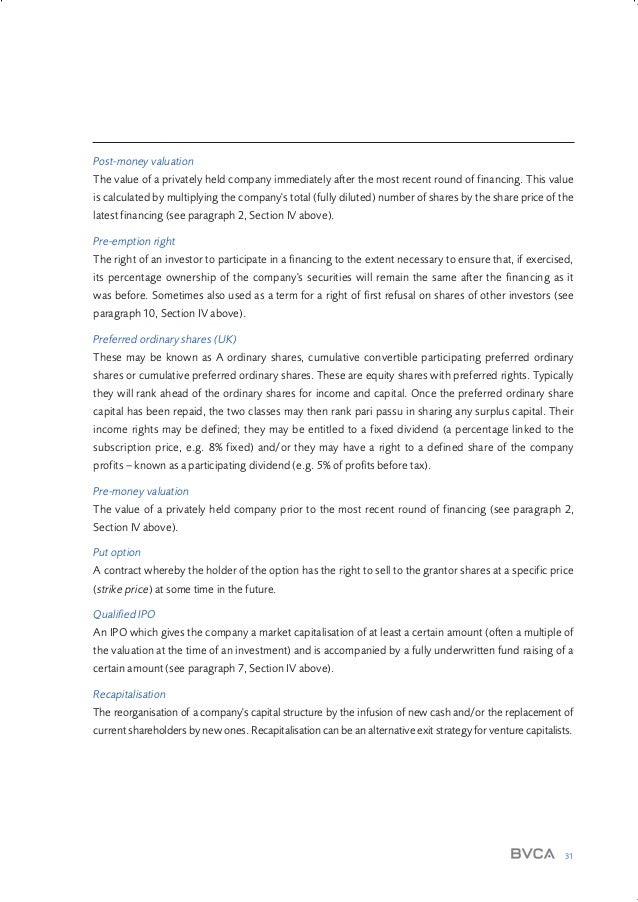 Pre money valuation is the value of a venture prior to a new money investment. Although premoney valuation is a significant factor in doing a VC/PE deal, there are other factors to consider in your evaluation In addition to the 1x preference, discussed earlier, there is often times an interest bearing note (that will need to be paid at closing) of 610% annually which, over a 4 or 5 year span, will dilute you further. The simplest way to think about this is If you own % of a $2 million company your stake is worth $400,000 If you raise a new round venture capital (say $25 million at a $75 million premoney valuation, which is a $10 million postmoney) you get diluted by 25% (25m / 10m). Postmoney is the valuation of equity after a new investment and premoney is the valuation before the investment Your company and the venture capitalist will negotiate the premoney valuation and.