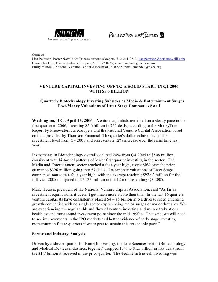 Venture Capital Investments Q1 06 Moneytree Release