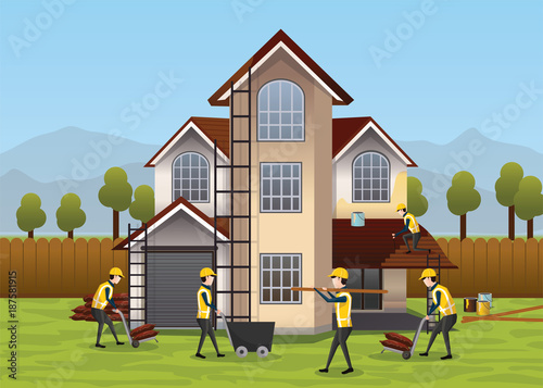 Construction Ahead Building a Cartoon House Drawing a cartoon house can be quite difficult if you don't break down the steps and work with basic geometric shapes However, if you start simple, you can have a lot of fun building a house that you'd like to live in Put on your hard hat, and let's get started. Download Construction worker cartoon stock photos Affordable and search from millions of royalty free images, photos and vectors Photos Brown wood home house window color illustration Two handsome Vector Similar Images People build vector man builder character work in team on construction Vector. Building a primitive house with a swimming pool!.