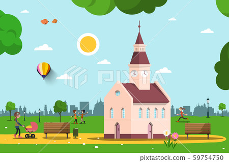 Cartoon Poster Illustration House And Running Man Building People Png Pngegg
