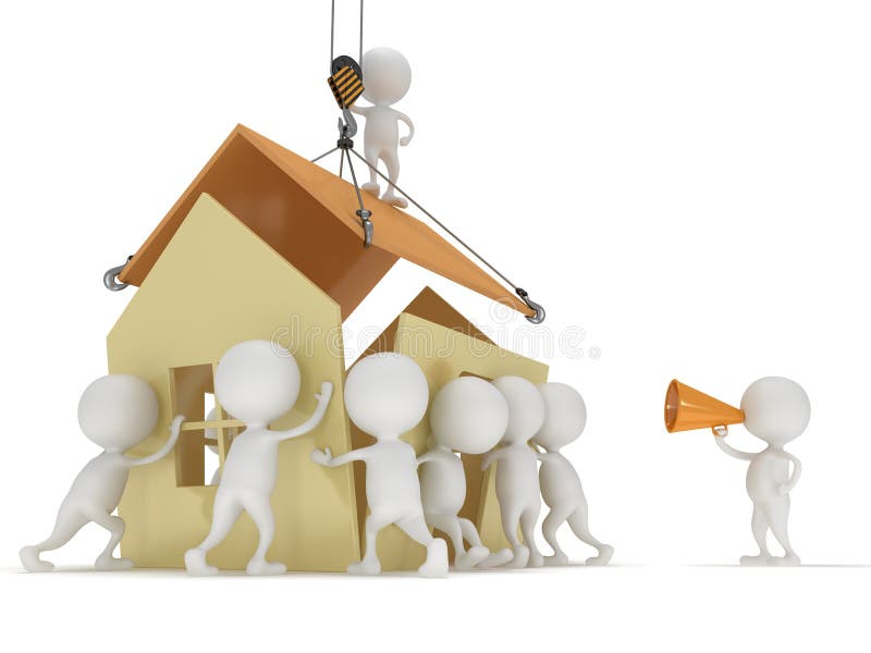 Moving And Building People Working Together To Build New House Men Characters Work Construction With Crane Creating Real Canstock
