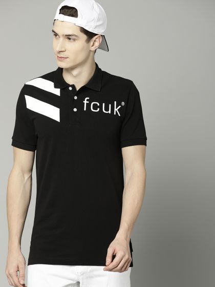 Buy French Connection Men Black Printed Polo Collar T Shirt Tshirts For Men Myntra