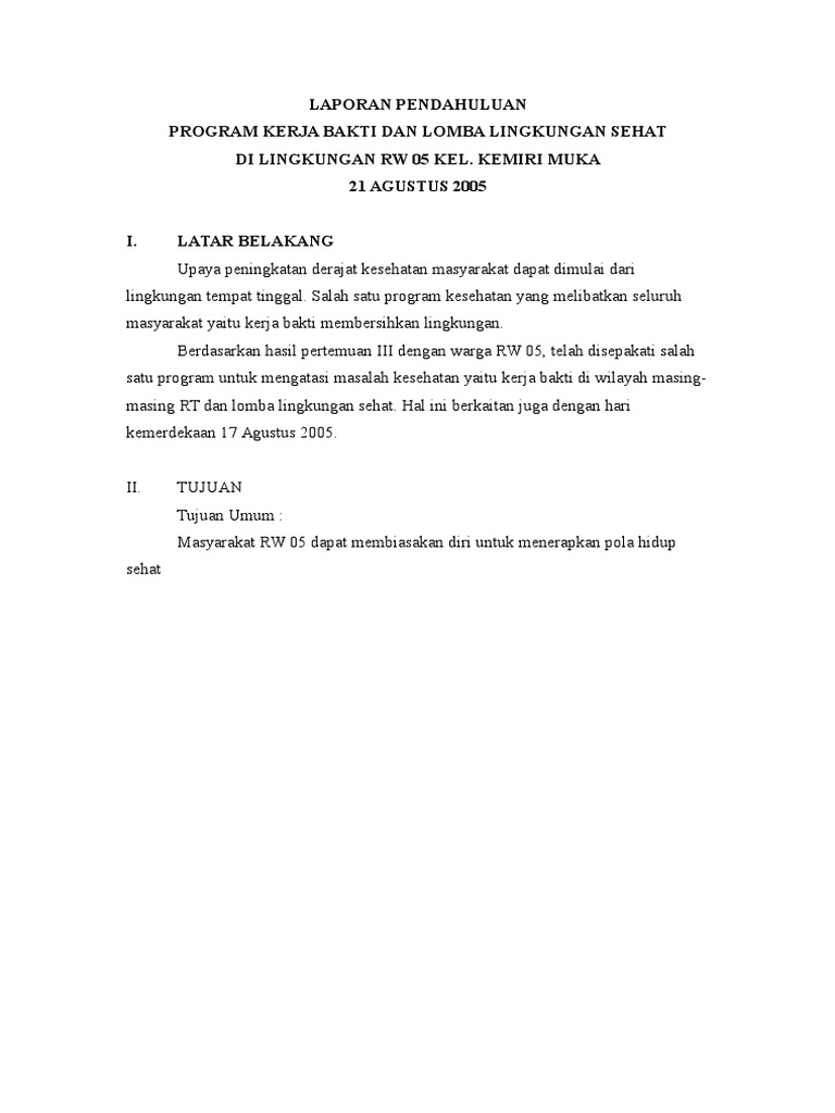 Laporan Pendahuluan Kerjabakti 21agustus