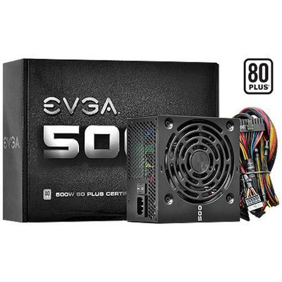 EVGA 500W 80 PLUS Certified Active PFC Power Supply When building on a budget, the EVGA 500W 80 PLUS is a great choice at a low cost Supporting 40A on a single 12V rail provides more options without having to reduce your component requirements Save space with the 500W's compact design, wellplaced power switch and fully sleeved cables. EVGA 500W 80Plus Power Supply Unit (100WKR) Internal 500 W 1 12V Rails Item #. With 80 Plus Bronze Standard, Over 80% efficiency under typical loads, The EVGA 500B is a great choice Combining 500 W of continuous power and single 12 V high amp rail design, gain maximum power and efficiency while staying protected with a Series of over volt/over Current protections all bundled into one!.