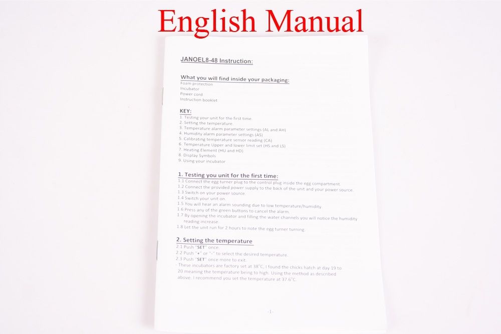 Janoel 8 48 Incubator Instructions