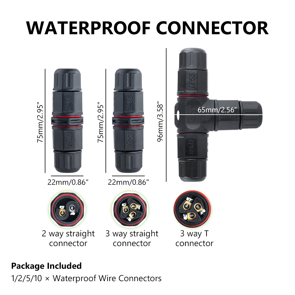 Waterproof Outdoor External Junction Box Cable Connector 2 3 Pin 8 10mm T Shape