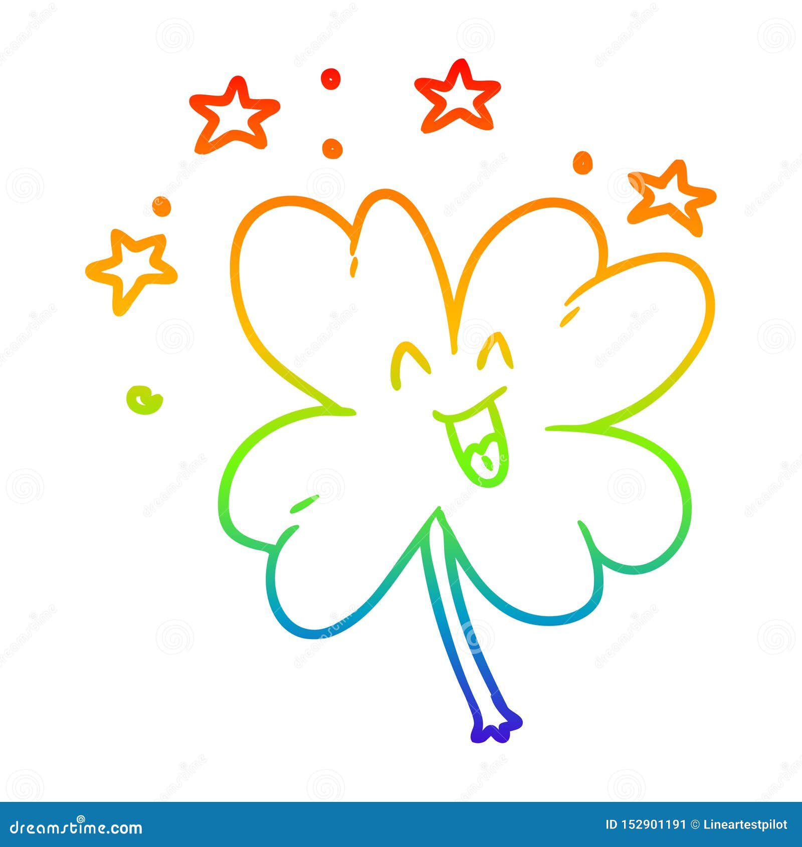 A Creative Rainbow Gradient Line Drawing Happy Cartoon Four Leaf Clover Stock Vector Illustration Of Clover Drawing