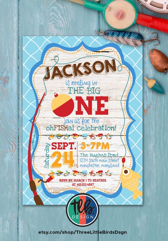There are many ideas of fishing invitations for a birthday party, from the one with a real fish design to the one with a comical fish design Like any other templates that can be personalized and customized for free, the Fishing Birthday Party Invitation Template can, too The ocean themed birthday February 19, 21 Birthday. Tackle Box Relay Divide the children into two teams Give each team an empty tackle box On the other side of the room, place two sets of items to go into the tackle box, such as bobbers, lures, spools of fishing line, and various tools (for safety, you can use cut out pictures of any sharp tools)Team members take turns running to retrieve one item at a time from the pile to bring back and. Feb 13, 21 Your little guy is reeling in the big ONE This is O fish ally the perfect highchair banner for his birthday party, cake smash photos and first birthday photo shoot!.