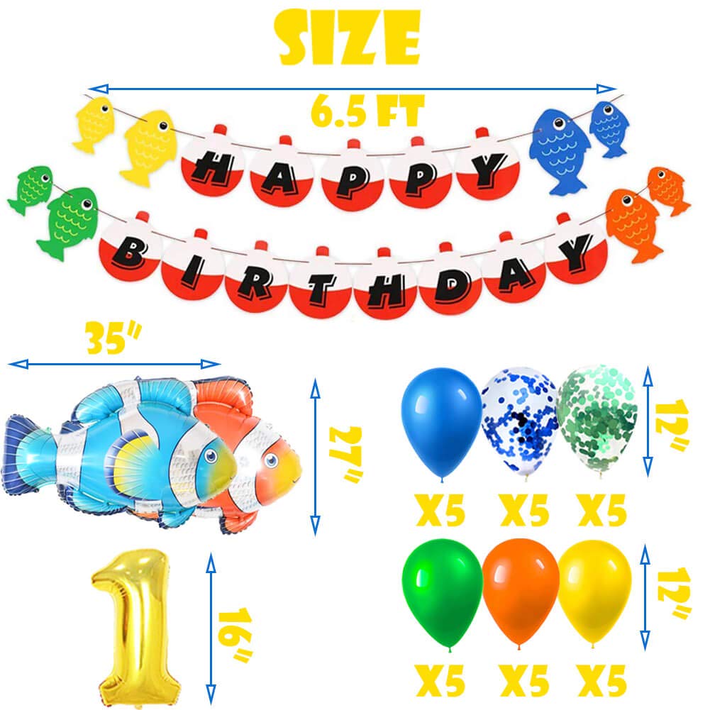 Amazon Com 70 Pack Gone Fishing Happy Birthday Party Kits Little Fisherman The Big One Banner Cake Topper Cupcake Topper Balloons Decorations Photo Props Summer Reel Fun Ideas Supplies Toys Games