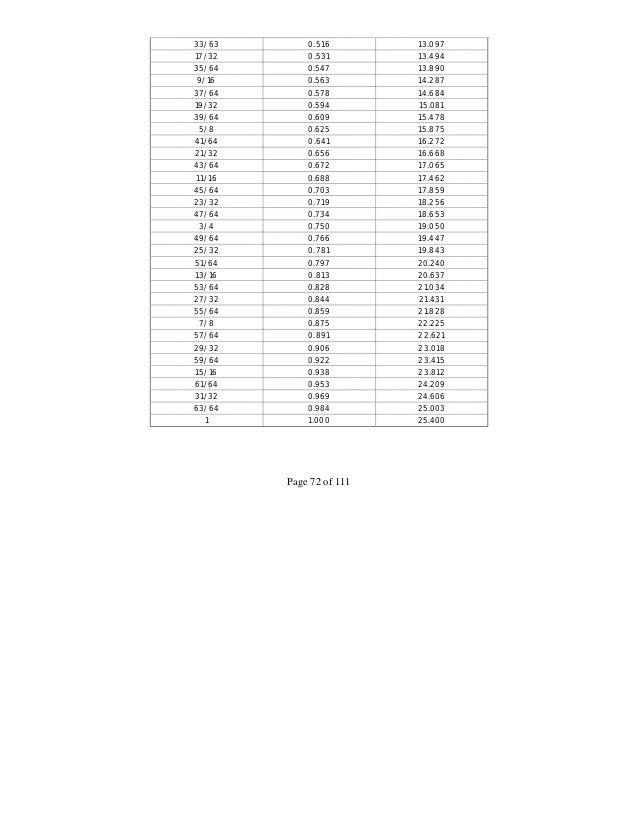 Inches Fractional To Decimal Equivalents