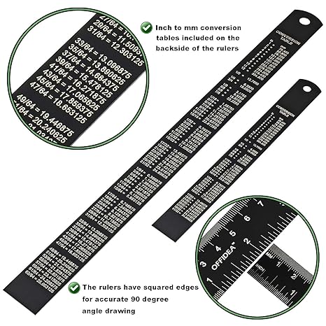 Offidea Steel Ruler 12 Inch And Steel Ruler 6 Inch Set Metal Rulers With 1 16 And 1 32 Inch Imperial And 1mm And 5mm Metric High Contrast Scales Conversion Tables