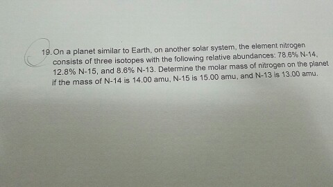 Group 15 elements are also called Nitrogen family includes nitrogen phosphorus, arsenic, antimony and bismuth elements The pblock elements are also known as the Representative Elements which is placed on the right side of the main periodic table. Nitrogen is the 7th element on the periodic table One isotope of nitrogen has atomic mass 15 In a neutral nitrogen15 atom there are _____. Abundance of 9963% X15 has a mass of amu and a relative abundance of 037% Identify the unknown element please show your work and explain what you can so i can understand how you do this thank you.