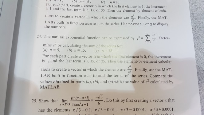 Solved B N 15 C N 30 For Each Part Create A Vector Chegg Com