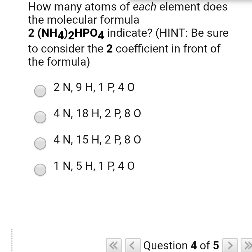 Solved How Many Atoms Of Each Element Does The Molecular Chegg Com