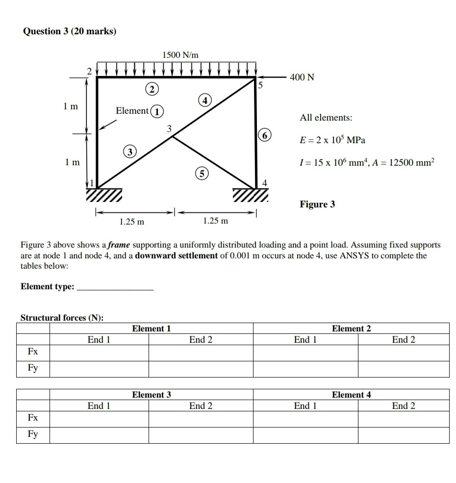 Question 3 Marks 1500 N M 400 N 1 M Im Ele Chegg Com