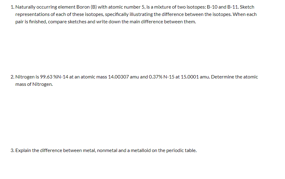 Solved 1 Naturally Occurring Element Boron B With Atom Chegg Com