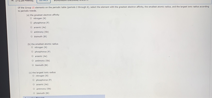 Solved Of The Group 15 Elements On The Periodic Table Pe Chegg Com