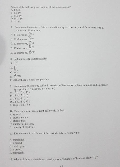 Solved Which Is The Correct Chemical Symbol In Isotopic N Chegg Com