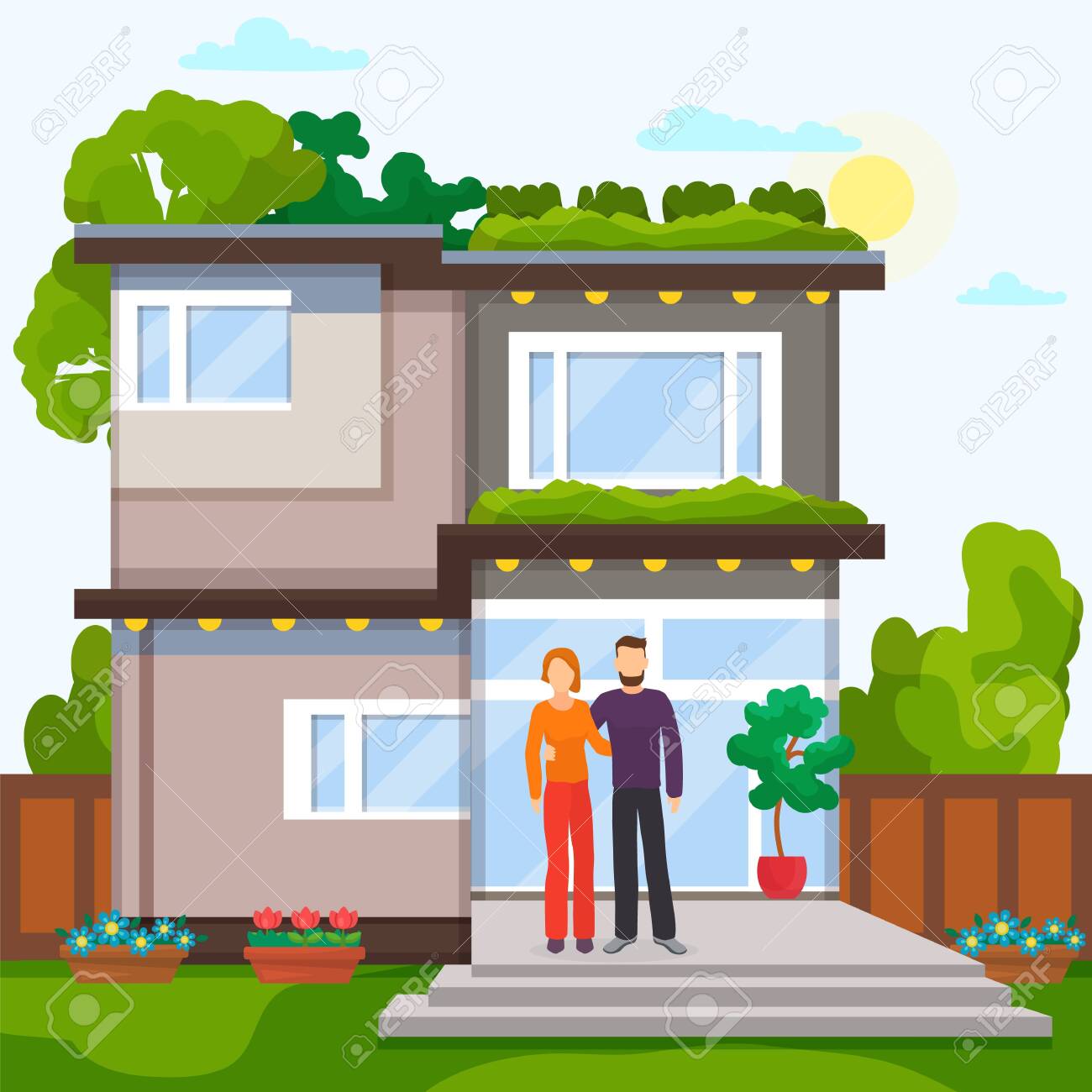Home Couple Vector Illustration Estate Property House Exterior Royalty Free Cliparts Vectors And Stock Illustration Image