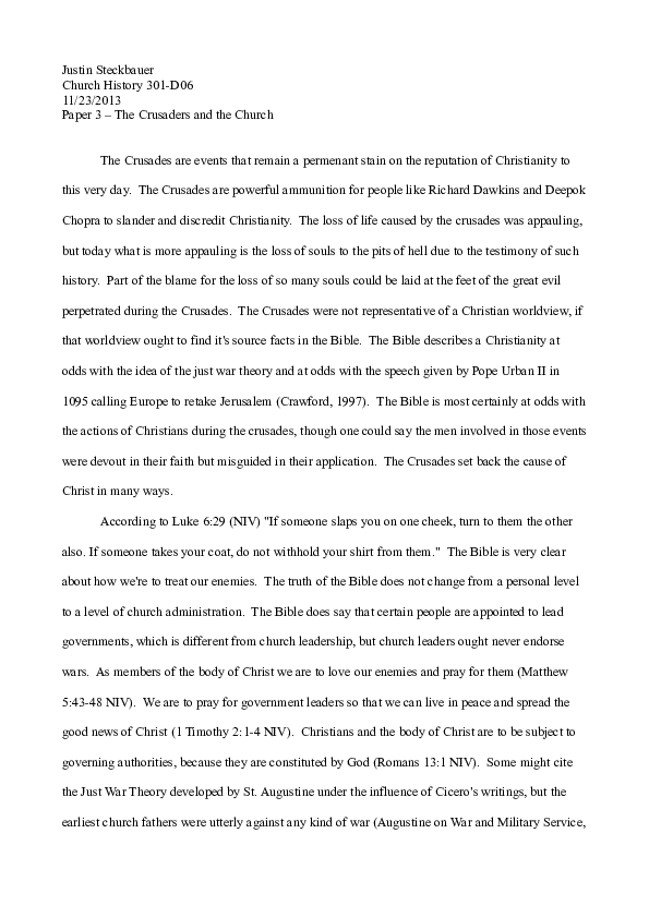 Doc The Crusades And The Impact On Christianity Justin Steckbauer Academia Edu