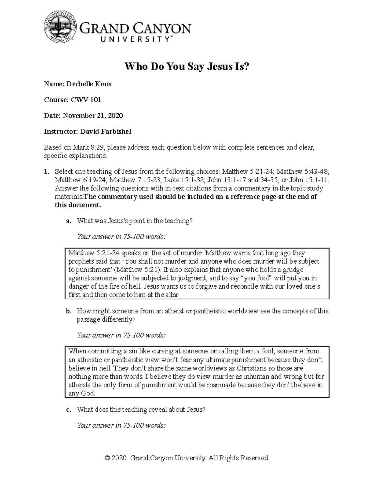 Cwv 101 T4 Who Do You Say Jesus Is Studocu